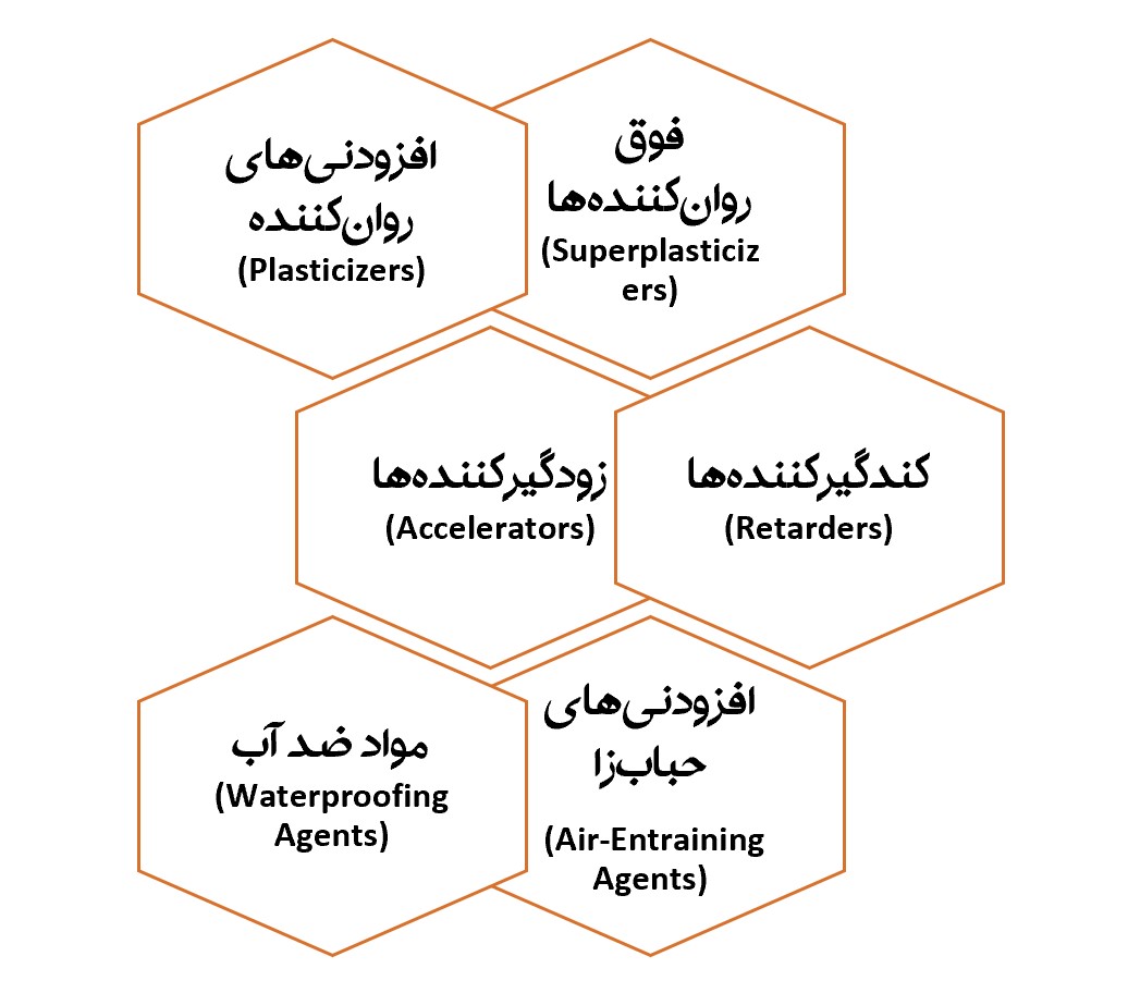 افزودنیهای ساختمانی را میتوان به دستههای زیر تقسیم کرد: